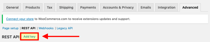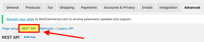 - Click Add key button below the REST API heading.